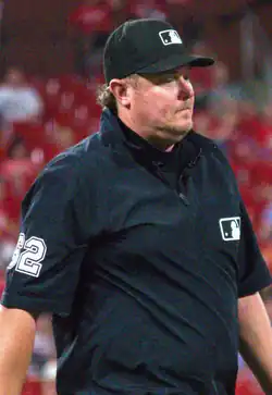 Chad Robert Whitson (born December 8, 1981) is an American umpire in Major League Baseball (MLB) who was hired to the full-time staff in 2019 and wears number 62.[1] He was born in Dublin, Ohio.[2] He made his MLB debut on May 15, 2014.[2] He has also umpired in the Gulf Coast League, the Appalachian League, the South Atlantic League, the California League, the Eastern League, the International League, and the Arizona Fall League.[3]