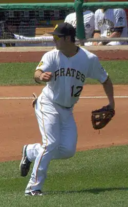 Chase Jonathan d'Arnaud (born January 21, 1987), is an American former professional baseball utility player. He played in Major League Baseball (MLB) for the Pittsburgh Pirates, Philadelphia Phillies, Atlanta Braves, Boston Red Sox, San Diego Padres, and San Francisco Giants.