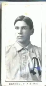 Charles Albert "Chief" Bender (Ojibwe: Mandowescence; May 5, 1884[a 1] – May 22, 1954) was a Native American professional baseball pitcher who played in Major League Baseball during the 1900s and 1910s. In 1911, Bender tied a record by pitching three complete games in a single World Series. He finished his career with a 212–127 win–loss record for a .625 winning percentage and a career 2.46 earned run average (ERA).
