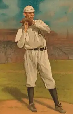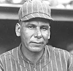1. ^ There is uncertainty about Bender's birth-date. He was voted the SABR "Centennial Celebrity" of 1983, as the best baseball player or figure born in 1883. However, the SABR Baseball Research Journal for 1983 acknowledges that there are discrepancies in records about Bender's birth year, ranging from 1883 to 1885. They year 1884 is the figure most often given. His grave marker says 1884.