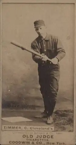 After brief stints with the Detroit Wolverines (eight games in 1884) and New York Metropolitans (six games in 1886), Zimmer joined the Cleveland Blues in 1887. He remained in Cleveland for 13 seasons from 1887 through 1899.[2]