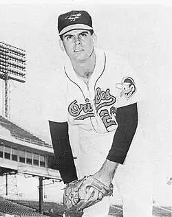 "He was one of those guys you'd clock at ninety miles plus. He was a young guy, and he had a fine year.... Another time he was pitching a one-hitter, and he'd pitched his allotted seventy-five pitches. I was going to take him out. He talked me out of it. I didn't want to tell him I had orders up above. I said, 'This is your last inning. You'd better get him out. You need three pitches to get him out.' I had to do a little fudging on saying how many pitches he made. He made seventy-eight."[3]