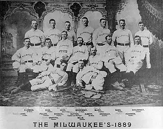 Griffith broke into organized baseball late in the 1887 with the local Bloomington club in the Central Interstate League.[8] The following year, during an exhibition game against the Milwaukee Creams of the Western Association, Griffith so impressed Milwaukee manager Jim Hart that he offered the 18-year old a contract at $225 a month. Clark pitched for Milwaukee for three seasons before Charlie Comiskey convinced him to join the major leagues.[9]