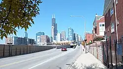 ![]() Clark Street at the Roosevelt Road interchange (October 2022) | |