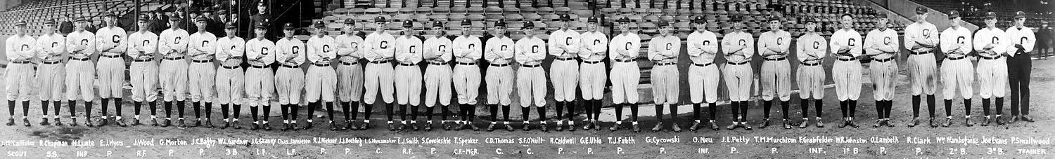 By 1916, Somers was at the end of his tether, and sold the team to a syndicate headed by Chicago railroad contractor James C. "Jack" Dunn.[41] Manager Lee Fohl, who had taken over in early 1915, acquired two minor league pitchers, Stan Coveleski and Jim Bagby and traded for center fielder Tris Speaker, who was engaged in a salary dispute with the Red Sox.[43] All three would ultimately become key players in bringing a championship to Cleveland.