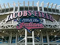 The Cleveland Guardians are an American professional baseball team based in Cleveland. The Guardians compete in Major League Baseball (MLB) as a member club of the American League (AL) Central Division. Since 1994, the team has played its home games at Progressive Field (originally known as Jacobs Field after the team's then-owner). Since their establishment as a Major League franchise in 1901, the team has won 13 Central Division titles, six American League pennants, and two World Series championships (in 1920 and 1948). The team's World Series championship drought since 1948 is the longest active among all 30 current Major League teams.[2][3] The team's name references the Guardians of Traffic, eight monolithic 1932 Art Deco sculptures by Henry Hering on the city's Hope Memorial Bridge,[4] which is adjacent to Progressive Field.[5][6] The team's mascot is named "Slider".[7] The team's spring training facility is at Goodyear Ballpark in Goodyear, Arizona.[8]