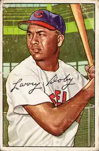 Under Veeck's leadership, one of Cleveland's most significant achievements was breaking the color barrier in the American League by signing Larry Doby, formerly a player for the Negro league's Newark Eagles in 1947, 11 weeks after Jackie Robinson signed with the Dodgers.[58] Similar to Robinson, Doby battled racism on and off the field but posted a .301 batting average in 1948, his first full season. A power-hitting center fielder, Doby led the American League twice in homers.