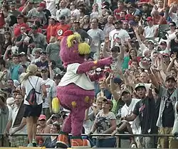 The Indians appeared in a film the following year titled The Kid From Cleveland, in which Veeck had an interest.[58] The film portrayed the team helping out a "troubled teenaged fan"[62] and featured many members of the Indians organization. However, filming during the season cost the players valuable rest days leading to fatigue towards the end of the season.[58] That season, Cleveland again contended before falling to third place. On September 23, 1949, Bill Veeck and the Indians buried their 1948 pennant in center field the day after they were mathematically eliminated from the pennant race.[58]