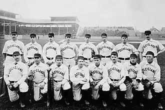 ![]() Logo 1892 team photo at League Park, with the original wooden stands visible in the background | |