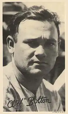 William Clifton Bolton (April 10, 1907 – April 21, 1979) was an American catcher in Major League Baseball who played for the Washington Senators and Detroit Tigers. The native of High Point, North Carolina, batted left-handed, threw right-handed, and was listed as 5 feet 9 inches (1.75 m) tall and 160 pounds (73 kg).