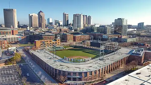 Professional baseball was first played in Columbus, Ohio, in 1877 by the Columbus Buckeyes of the International Association.[2] It has been represented at the highest levels of Minor League Baseball nearly continuously since 1902, at first in the American Association by the Columbus Senators (1902–1930) and Columbus Red Birds (1931–1954) and then in the International League (IL) by the Columbus Jets (1955–1970).[2] In 1971, the Jets moved to Charleston, West Virginia, as the Charleston Charlies, touching off a six-year drought of minor-league baseball in Columbus.[2]