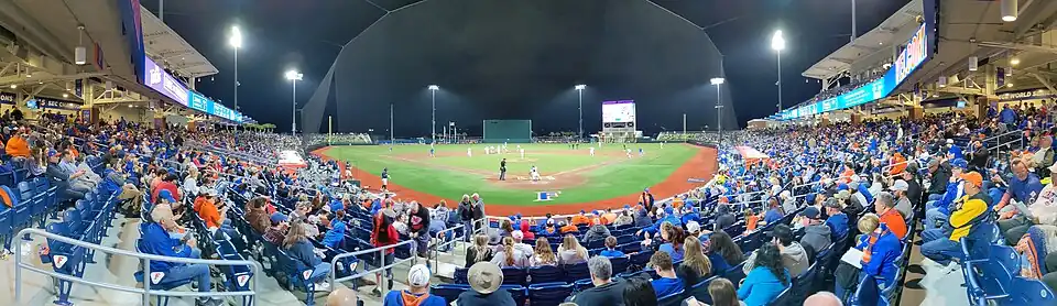 Condron Family Ballpark at Alfred A. McKethan Field is the college baseball stadium of the University of Florida, and serves as the home field for the Florida Gators baseball team. Condron Ballpark is located on the university's Gainesville, Florida campus, adjacent to the university's softball stadium, Katie Seashole Pressly Stadium, and its lacrosse stadium, Dizney Stadium. It replaced the former ballpark, Alfred A. McKethan Stadium at Perry Field, which had been the home of Florida baseball from 1988 through 2020; McKethan Stadium's earlier incarnation, known simply as Perry Field, had been the home field of Gator baseball since 1949.[2] The stadium opened on February 19, 2021, when the Gators hosted Miami in their season opener.[3]