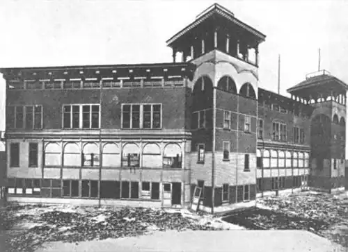 ![]() Congress Street Grounds' pavilion nearing completion, 1890. Only known photo of the exterior of the ballpark. | |