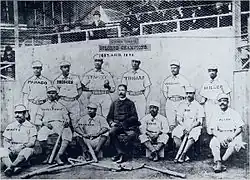The Cuban Giants were the first fully salaried African-American professional baseball club.[1] The team was originally formed in 1885 at the Argyle Hotel, a summer resort in Babylon, New York. Initially an independent barnstorming team, they played games against opponents of all types: major and minor league clubs, semiprofessional teams, even college and amateur squads. They would go on to join various short-lived East Coast leagues, and in 1888 became the "World Colored Champions". Despite their name, no Cubans played on the team. The "Cubes" remained one of the premier Negro league teams for nearly 20 years, and served as a model that future black teams would emulate.