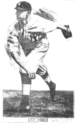 Edwin John "Cy" Pieh (September 29, 1886 – September 12, 1945) was a Major League Baseball pitcher who played from 1913 to 1915 with the New York Yankees.[1][2] He was a right-handed batter and pitcher. His nickname "Cy" was short for "Cyclone" because his corkscrew-style of pitching motion was said to resemble that of a cyclone.[3]