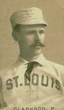 Clarkson was born in Cambridge, Massachusetts, and starred on the Harvard University baseball team in the 1880s.[1] He started his professional baseball career in 1891 with the New York Giants; however, he did not pitch much over the next two seasons. In 1893, Clarkson broke out with the St. Louis Browns, going 12–9 with a 3.48 earned run average. He was the only pitcher on the team to have a winning record.[2] Clarkson received more innings of work in 1894 but slumped badly and posted a 6.36 ERA.