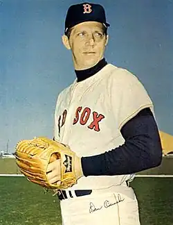 Entering the 1967 season, Osinski was projected to serve as a middle reliever for Boston.[37] In his first appearance of the year on April 16, he threw six shutout innings in an 18-inning, 7–6 loss to the Yankees.[38] On May 7, he limited the Twins to one run in five innings of relief, picking up the victory as the Red Sox won 9–6.[39] He threw eight innings over a two-day span on July 28 and July 29 in two losses to the Twins.[40] In 34 games, he had a 3–1 record, two saves, a career-low 2.54 ERA, 38 strikeouts, and 14 walks in 63+2⁄3 innings.[10] He was part of the Red Sox "Impossible Dream" team that won their first American League pennant since 1946.[2] The Boston Herald Traveler said of him, "Osinski is not a sentimentalist. Rather, he's a pro's pro. Though he has only five years in the major leagues, he has the qualities --maturity, judgment and a dogged competitiveness -- that often are never found in men with twice his longevity."[2]