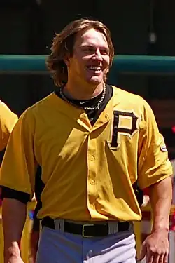 McCutchen was called up to the Pirates to make his major league debut on Monday, August 31, 2009. In his debut he pitched 6 innings and gave up 3 earned runs while striking out 5 and walking 2. On the second pitch of his career, he gave up a home run to Drew Stubbs. In his first Major League at-bat, McCutchen hit an RBI single off Cincinnati Reds pitcher Kip Wells.[9] He spent the vast majority of the 2009 season with the Indianapolis Indians, but in 2010, McCutchen began the season in the Pirates' starting rotation, beating out fellow righty, Kevin Hart.[10] In August 2010, McCutchen was moved to the bullpen for the Pirates.[11] In February 2012, McCutchen switched to uniform number 25, as his old number, 34, was traded to starter A. J. Burnett, in exchange for Burnett setting up a college fund for his daughter.[12] In November 2012, McCutchen elected free agency.