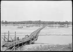 The Dardanelle pontoon bridge was the "World's Longest Pontoon Bridge" and connected Dardanelle and Russellville over the Arkansas River, while today's highway 22 connected Dardanelle to Paris and allowed auto travel to the other cities. Rail travel was also accessible and utilized by Dardanelle fans.[5]