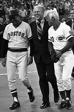 As a big-league manager, Johnson led three different teams over eight seasons. His career began when he succeeded Eddie Kasko following the conclusion of the Red Sox's 1973 campaign on September 30.[10] His biggest success came during his Red Sox posting when he compiled a win–loss record of 220–188 for a .539 winning percentage. He guided Boston to a 95–65 (.594) mark in 1975 and a first-place finish in the AL East. The Sox then swept the three-time defending world champion Oakland Athletics in the playoffs, 3–0, to win the American League pennant. But they lost to the Cincinnati "Big Red Machine" in the thrilling 1975 World Series, four games to three. In an interview conducted by Tim Russert on CNBC in 2003, Baseball Hall of Fame catcher Carlton Fisk named Johnson as the biggest influence in his professional life.[11] Johnson also had his detractors, such as Bill Lee, who stated that the team won "despite our manager", who did not communicate well with his players and even had his pitching coach stationed in the Red Sox bullpen rather than the dugout during the 1975 Series.[12]