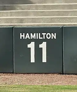 In 1990, despite missing time with injuries, Hamilton played in 89 games and hit .295.[1] He was awarded with the Brewers "Unsung Hero Award" in 1990[7] and the "Good Guy Award" in 1991[8] when he hit .311 in 122 games[1] while still dealing with an assortment of injuries.[9]