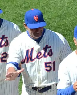 ![]() Hudgens as coach for the New York Mets in 2012. | |