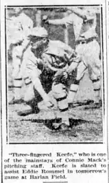 Keefe returned to the Major Leagues as a batting practice pitcher for the Athletics in the early 1930s and was listed as a full-time coach under Baseball Hall of Fame manager Connie Mack for eight seasons (1941; 1943; 1945–1950).[2] He then served as the club's traveling secretary (1951–1960) in both Philadelphia and Kansas City, where the Athletics moved in 1955. He died, at age 81, in Kansas City after a fire struck his apartment building and he was overcome when trying to rescue another elderly resident.[1]