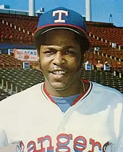 Nelson moved with the franchise to Texas, where he continued to gain a reputation as a base-stealing threat, stealing 51 bases in 1972.[5] He had his best year in 1973, when he played in his one and only All-Star Game, playing one inning at third base but not coming to bat.[7] That year, he finished with a batting average of .286, with seven home runs and 48 RBIs.[3] He remained with the Rangers until being traded to the Kansas City Royals in exchange for Nelson Briles following the 1975 season.[5]