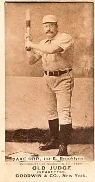 David L. Orr (September 29, 1859 – June 2, 1915) was an American first baseman in Major League Baseball from 1883 through 1890. Orr played most of his career in the American Association for the New York Metropolitans (1883–1887), Brooklyn Bridegrooms (1888) and Columbus Solons (1889). He also played for the New York Gothams in the National League for one game in 1883 and for the Brooklyn Ward's Wonders of the Players' League in 1890.