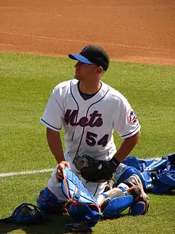 In the summer of 1997, Racaniello, then still a student at Norwalk, attended a Mets game with a friend. His friend's father was friends with the Mets' then-manager, Bobby Valentine, giving Racaniello and his friend an opportunity to meet the New York skipper before the game. The Mets' regular bullpen catcher at the time was not able to come to the game due to a recent family emergency, so Valentine, who had heard Racaniello had caught, asked him if he was willing to fill in. Racaniello agreed and suited up for the job. Racaniello would then fill in as the Mets' bullpen catcher and help out in the bullpen for most of the remainder of the 1997 season until he returned to Norwalk. When the position opened up for the 2001 season, the Mets asked him if he was interested in the job. He accepted and immediately dropped out of school to serve as the full-time bullpen catcher. He originally planned to possibly return to school, but his continued employment with the team prevented such a return. Since 2001, Racaniello has continuously served as the bullpen catcher for the Mets, warming up pitchers as well as throwing batting practice and serving as a "dummy" in drills.[4] On March 30, 2017, Racaniello led off for the Mets' major league squad at designated hitter in a game against the Triple-A affiliate Las Vegas 51s. Racaniello recorded a hit off of Jacob deGrom, but was thrown out attempting to steal second base by Travis d'Arnaud.