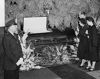 At the cathedral, Ruth's casket was placed on a catafalque which was surrounded by six lit candles.[21] The Archbishop of New York, Cardinal Francis Spellman delivered the requiem.[22] Cardinal Spellman did not deliver a eulogy but he said a special prayer asking that Ruth's memory may inspire future generations.[21] The text of his speech was reported by The Catholic Advance:[5]