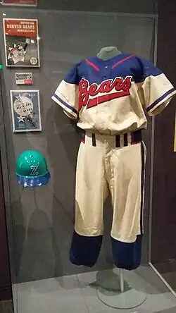 Denver, Colorado, had been the home of numerous minor league baseball teams dating back to 1885 with an unnamed team of the Colorado State League. Off and on from 1901 to 1954, the city was represented by the Denver Bears of the Western League. In 1955, the Class A Bears were replaced by a Triple-A team of the American Association.[1] This came about when the Kansas City Blues were forced to move after the American League's Philadelphia Athletics moved to Kansas City, Missouri, to become the Kansas City Athletics.[2]