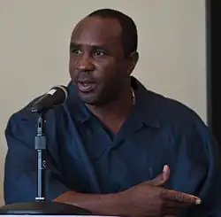 Devon Markes Whyte[1] (formerly and commonly known as Devon White; born December 29, 1962), nicknamed "Devo", is a Jamaican former professional baseball center fielder, best known for his defensive ability at that position. He played in Major League Baseball (MLB) for the California Angels, Toronto Blue Jays, Florida Marlins, Arizona Diamondbacks, Los Angeles Dodgers, and Milwaukee Brewers. Following his playing career, White served as the first base coach for the Triple-A Buffalo Bisons, and was briefly called up to the Blue Jays as first base coach in 2022.