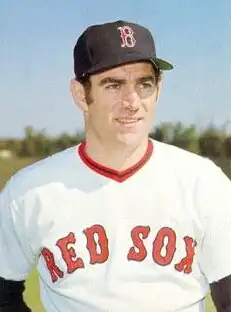 McAullife was traded by the Tigers to the Boston Red Sox for Ben Oglivie on October 23, 1973.[21] McAuliffe hit .210 in 100 games for the Red Sox in 1974.[10] He began 1975 as the manager of Boston's Double-A farm team, the Bristol Red Sox, located in McAuliffe's home state of Connecticut.[22] He guided Bristol into first place in the Eastern League but was recalled to Boston in August to resume his playing career as a utility infielder. However, McAuliffe was released after playing seven more games. His career ended on September 1, 1975, in a Yankees–Red Sox game. McAuliffe dropped an easy popup for an error.[1] Later in the inning, McAuliffe's throw pulled Carl Yastrzemski off first base.[1] Though the play was scored a single, Boston fans booed McAuliffe. He was left off Boston's postseason roster, and his major league career was over.[1]