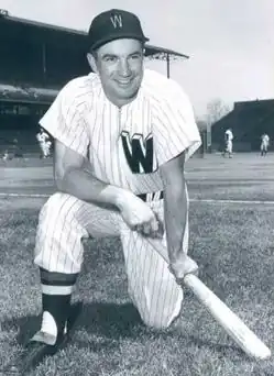 The following February, the Yankees included him in a seven-player trade with Washington that sent left-handed hurler Mickey McDermott to the Bronx. Then, facing the Yankees on April 17 in the traditional "Presidential Opener" at Griffith Stadium, Tettelbach homered off Don Larsen in his first at-bat as a Senator in the presence of Dwight D. Eisenhower, the 32nd President of the United States. The solo shot was one of the few bright spots of a 10–4 Washington defeat.[1][2]