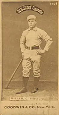 In 1883, an 18-year-old Miller debuted in professional baseball with the Harrisburg squad in the Interstate Association. A year later, he made the major leagues with the Pittsburgh Alleghenys of the American Association (AA). He spent ten seasons in Pittsburgh, staying with the team in 1887 when the team joined the National League (NL), ultimately becoming known as the Pirates.[1]