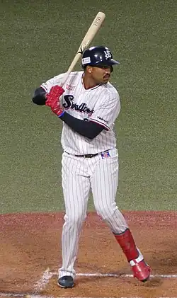 On December 2, 2020, Santana signed with the Tokyo Yakult Swallows of Nippon Professional Baseball.[29] He hit two home runs in the 2021 Japan Series, helping the Swallows win the championship.[30]