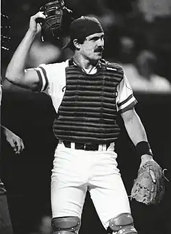 Donald Martin Slaught (born September 11, 1958), nicknamed "Sluggo", is an American former professional baseball catcher. He played in Major League Baseball (MLB) from 1982 through 1997 for the Kansas City Royals, Texas Rangers, New York Yankees, Pittsburgh Pirates, California Angels, Chicago White Sox, and San Diego Padres.