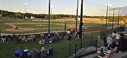 The Bourne Braves began play on the newly-constructed field in 2006, after having previously played home games at Coady School field and Massachusetts Maritime Academy's Hendy Field since the team's inception in 1988.[1] In a 2007 Braves pre-game ceremony, the new ballpark was dedicated as "Doran Park" in memory of long-time baseball fan and Sagamore resident, George Doran, Sr., and was touted as "the model for the Cape League’s future."[2] The following season, the Braves held a lighting ceremony to celebrate the park's new minor league caliber lighting system, a gift from the Doran family. Among the speakers at the 2008 event was former Bourne Brave and Boston Red Sox player Lou Merloni.[3][4]