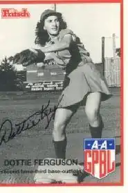 Ferguson entered the AAGPBL in 1945 with the Rockford Peaches, playing for them 10 years until the league folded in 1954. A proven performer, speedy Ferguson averaged over 46 stolen bases per season and collected a personal-best 91 steals in 1951. Though mainly a singles hitter, she was a productive force at the plate, connecting 645 hits while walking 455 times in 3216 at-bats. A versatile infielder who played mainly at second base and third, she gained respect amongst fellow players after switching to center field.[2][5]