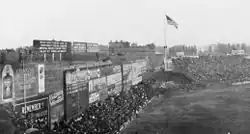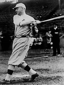 In 1913, Lewis batted .298 with no home runs.[11] Babe Ruth made his major league debut on July 11, 1914, and Lewis pinch hit for Ruth during the game.[1] He was the only player to pinch hit for Ruth during the latter's major league career.[12] Lewis finished the 1914 season with a .278 batting average.[13] In 1915, Lewis batted .291 with 31 doubles,[14] which was the second-most in the league.[15] The Red Sox faced the Philadelphia Phillies in the 1915 World Series, and won in five games. Lewis batted .444 (8-for-18) against the Phillies.[16] He also recorded five out of the 12 RBIs in the series for Boston.[1] He drove in the game-winning runs in both Games 3 and 4, and made several catches that helped Boston win the series.[17][18] After the World Series, Lewis returned to the San Francisco Bay Area, where he performed vaudeville shows at the Pantanges Theatre in Oakland for $500 a week ($15,541 in current dollar terms).[19][20]