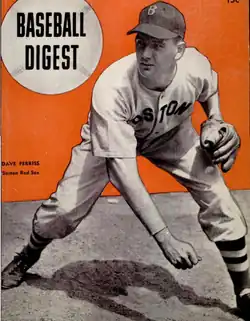 - Boo Ferriss – Starting with a 21 win rookie season in 1945, Ferriss had a remarkable first two years as a major league pitcher before injuring his arm in 1947, an injury that effectively ended his career.[17] Not mentioned in Van Blair's book is that Ferriss was drafted into the Army in 1942. For three years, Ferriss was a physical fitness instructor at Randolph Field in Texas before being discharged for a worsening asthmatic condition in 1945.[18] After a brief stint as a pitching coach for the Red Sox, Ferriss returned to his native Mississippi and was hired as the baseball coach for Delta State University, a position he held for 26 years. Ferriss has received numerous honors in his life and is a member of both the Boston Red Sox Hall of Fame and the Mississippi Sports Hall of Fame.[18] As of 2013, Ferriss, 91, was living in retirement in Mississippi.[19]