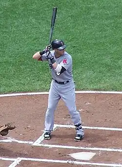 Pedroia was a proficient contact hitter with a very low strikeout rate and "a surprising amount of power," whose defense at second base has been rated significantly above-average.[4][5] Pedroia was the first Red Sox infielder to win four Gold Gloves.[6][7][8]