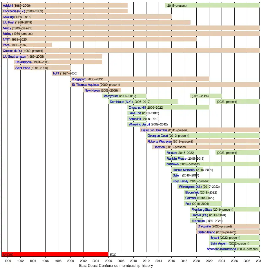 - 2006 – The NYCAC was rebranded as the East Coast Conference (ECC) in the 2006–07 academic year.