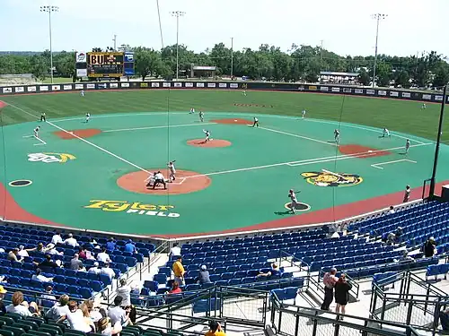 The stadium is home of the Wichita State Shockers baseball team. It has played host to the Shockers in rudimentary form since 1978, and as a complete stadium since 1985. Officially called Eck Stadium, Home of Tyler Field at Gene Stephenson Park[1] it is sometimes informally referred to as Eck.