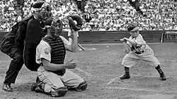 ![]() Gaedel batting in August 1951, in his only plate appearance in baseball | |