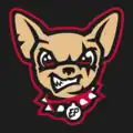 A name-the-team contest was held to decide the team's nickname. Finalists were Aardvarks, Buckaroos, Chihuahuas, Desert Gators, and Sun Dogs. The winning name was submitted by Shae Vierra. On October 22, 2013, the Chihuahuas name, logo and colors were announced.[1] The name is a reference to the Chihuahuan Desert encompassing the area. The team logo is a growling chihuahua dog. In 2014, the team adopted a chihuahua dog from the American Humane Society and allowed fans to vote for her name by donating one dollar to the Humane Society. The winning name was Lola.[4]