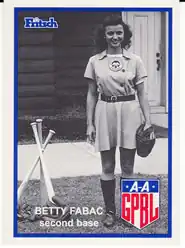 Born in Detroit, Michigan, Betty Fabac started playing on a softball league in Detroit, where an AAGPBL scout asked her to come to the league. She attended spring training at Opa-locka, Florida in 1945 and was assigned to the Kenosha Comets, playing for them through the 1948 season.[3]