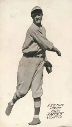 William Elmer Jacobs (August 10, 1892 – February 10, 1958) was an American pitcher in Major League Baseball from 1914 to 1927. He played for the Philadelphia Phillies, Pittsburgh Pirates, St. Louis Cardinals, Chicago Cubs, and Chicago White Sox.[1] Jacobs' key pitch was the curveball. In 1926, he was suspended for 10 days after being caught with foreign substances on the mound.[2]