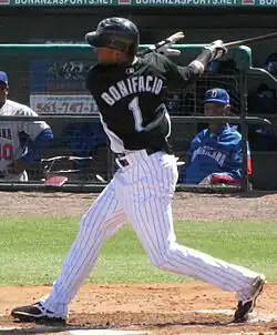 Emilio José Bonifácio Del Rosario (born April 23, 1985) is a Dominican professional baseball utility player for the Guerreros de Oaxaca of the Mexican League, who also captains the Tigres del Licey of the Dominican Professional Baseball League. He has previously played in Major League Baseball (MLB) for the Arizona Diamondbacks, Florida/Miami Marlins, Toronto Blue Jays, Kansas City Royals, Chicago Cubs, Chicago White Sox, Atlanta Braves, and Washington Nationals. Primarily a second baseman and center fielder throughout his career, Bonifácio has also played right field and third base.